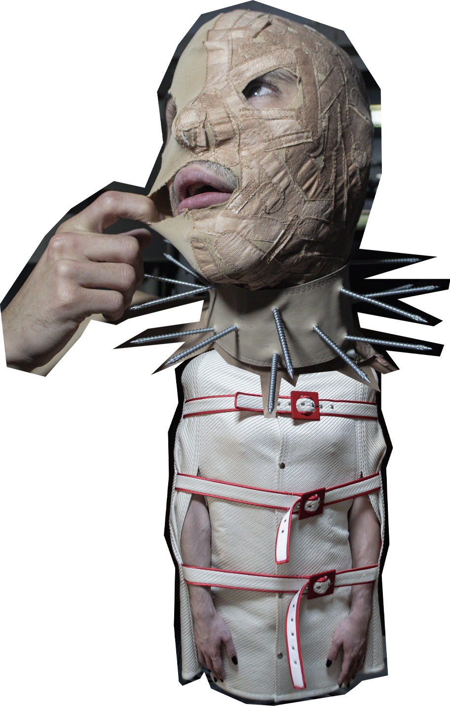 The mental and physical restrictions that were applied in the past in asylums and mental institutions now become a symbol of how, in today’s society, men and women are supposed to dress and live their life